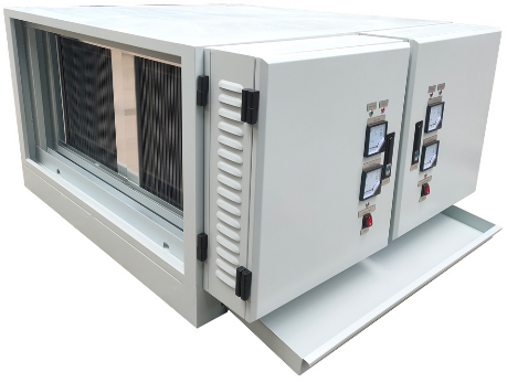 Electrostatic Precipitators operate by ionizing the particles within the exhaust air and then capturing them using charged metal plates. The captured grease is then drained and collected at the base of the unit. This process purifies the once contaminated air from commercial kitchen, leaving air pollution to a minimum at the discharge location.